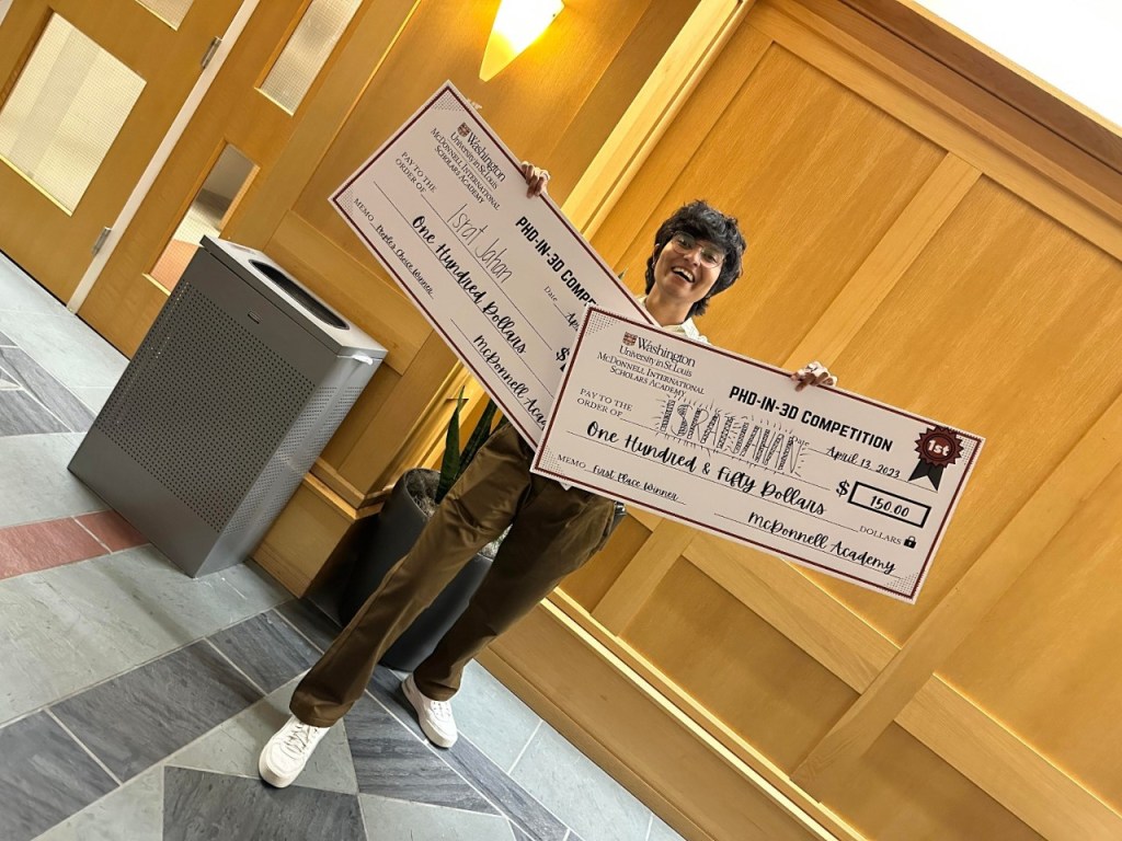 Graduate student Israt Jahan won both the people’s choice and first place in the McDonnell International Scholars Academy 3 minute thesis competition! She talked about
