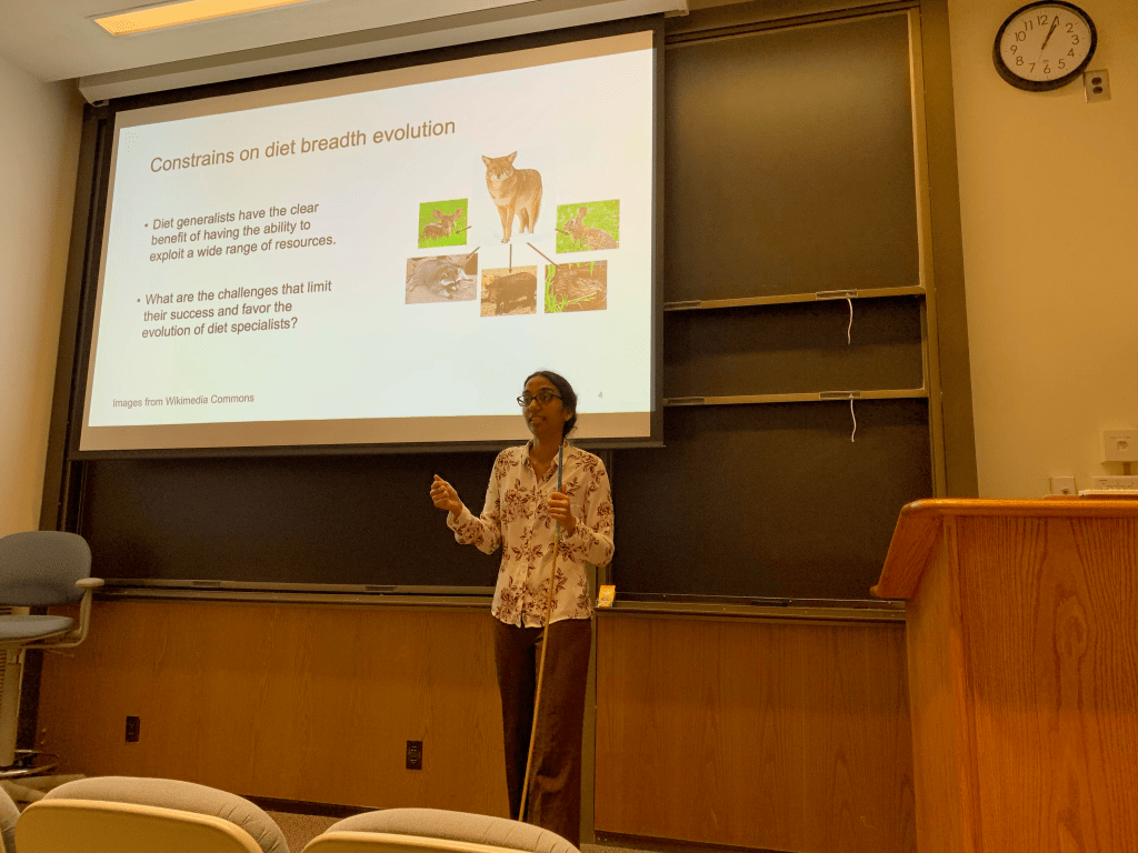 Shreenidhi successfully defended her PhD thesis entitled “The Challenges of Diet Generalism in a Microbial Predator, Dictyostelium discoideum” on November 8th. After a much deserved break, she will next be joining the lab of Dr. Aaron Reinke at the University of Toronto as a postdoctoral fellow next year, where she will work on host-symbiont dynamics between Caenorhabditis elegans and microsporidia. Congrats Shreenidhi!
