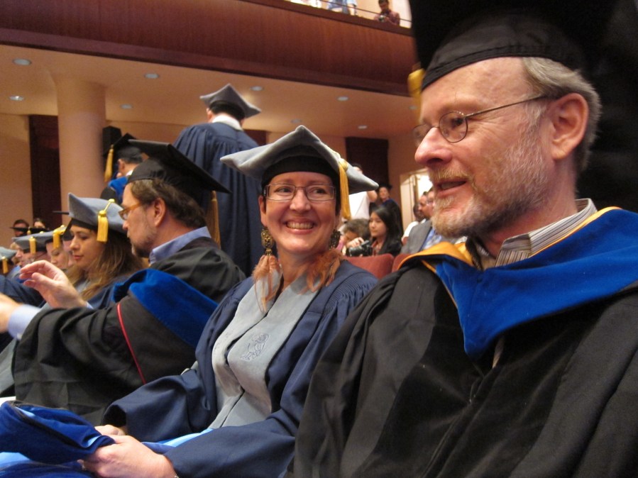 Recent (2012) Rice PhD graduate Debbie Brock on the left and David Queller on the right at graduation.